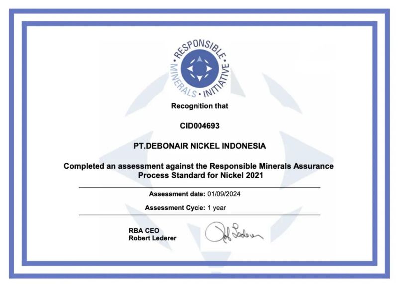 近日,位于中偉印尼緯達(dá)貝產(chǎn)業(yè)基地的印尼德邦鎳業(yè)有限公司成功獲得責(zé)任礦產(chǎn)倡議(Responsibie Minerals Initiative,簡(jiǎn)稱“RMI”)頒發(fā)的礦產(chǎn)供應(yīng)鏈盡責(zé)管理審核通過證書,成為印尼首家申請(qǐng)并通過RMI礦產(chǎn)供應(yīng)鏈盡責(zé)管理審核的鎳粗煉企業(yè)。