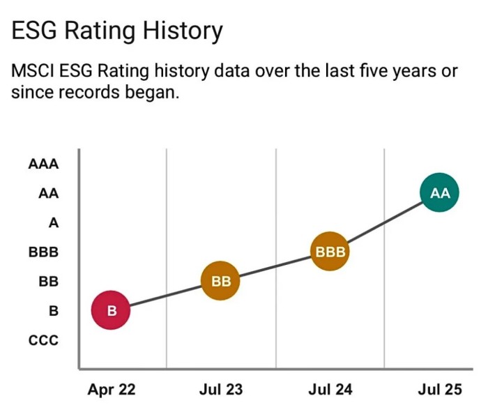 7月28日,國際權威投資者指數編制公司摩根士丹利(MSCI)發布最新ESG評級結果,中偉股份從BBB級躍升至AA級,標志著公司可持續發展水平跨越式提升。